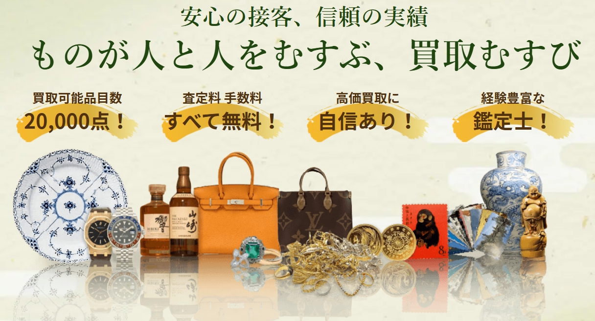店舗・出張・宅配の選択肢を持ちつつ、他ジャンルも広く見てもらいたい人には買取むすびが候補です。